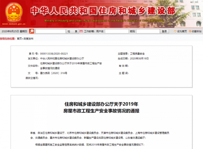 日前,住建部辦公廳下發(fā)《關(guān)于2019年房屋市政工程生產(chǎn)安全事故情況的通報(bào)》,要求,2020年,各地要深入查找本地區(qū)安全生產(chǎn)工作的薄弱環(huán)節(jié)和突出問題,推動(dòng)防范化解施工安全重大風(fēng)險(xiǎn)各項(xiàng)部署落地見效,堅(jiān)決遏制重特大事故。