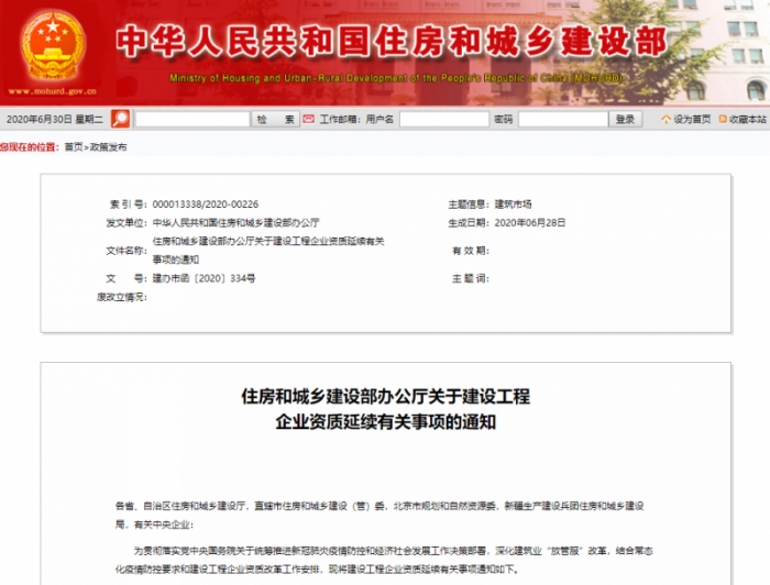 2020年7月1日前,住建部已受理的資質(zhì)延續(xù)申請事項(xiàng),不再進(jìn)行審批,相關(guān)資質(zhì)證書有效期延期至2021年12月31日。