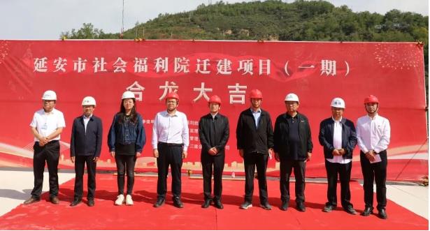 延安市民政系統(tǒng)職工代表,社會(huì)福利院職工代表,各設(shè)計(jì)、施工、監(jiān)理單位代表及全體項(xiàng)目管理人員等參加封頂儀式。