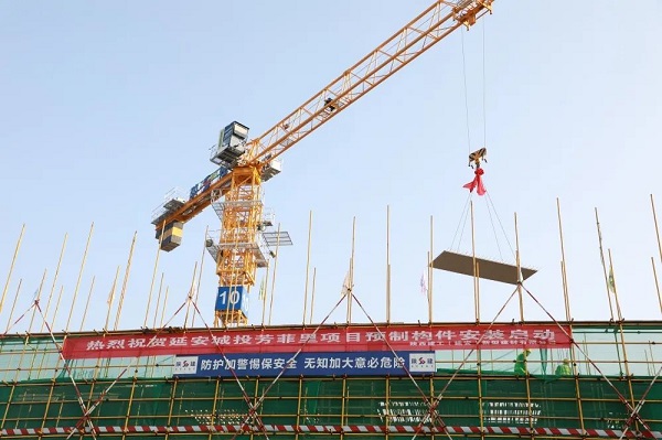 10月28日,由陜建十三建集團(tuán)承建的延安首個裝配式建筑項(xiàng)目—伴山樾谷·芳菲里開始進(jìn)行預(yù)制構(gòu)件吊裝。