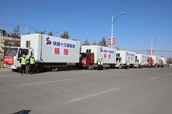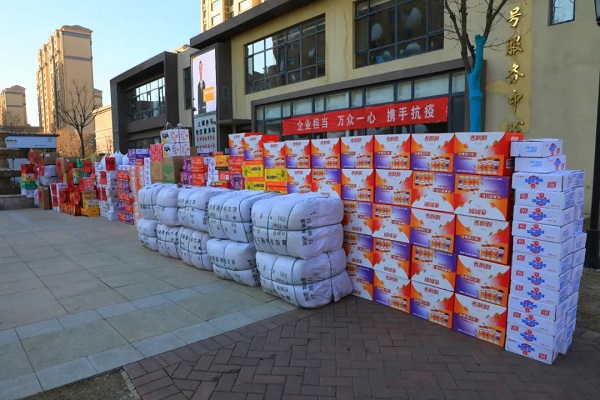 為支援一線防疫工作,陜建十三建集團向延安新投物業(yè)服務有限公司捐贈了8000只口罩、100件軍大衣,60箱方便面、60箱火腿腸、60箱奶茶和15箱榨菜。