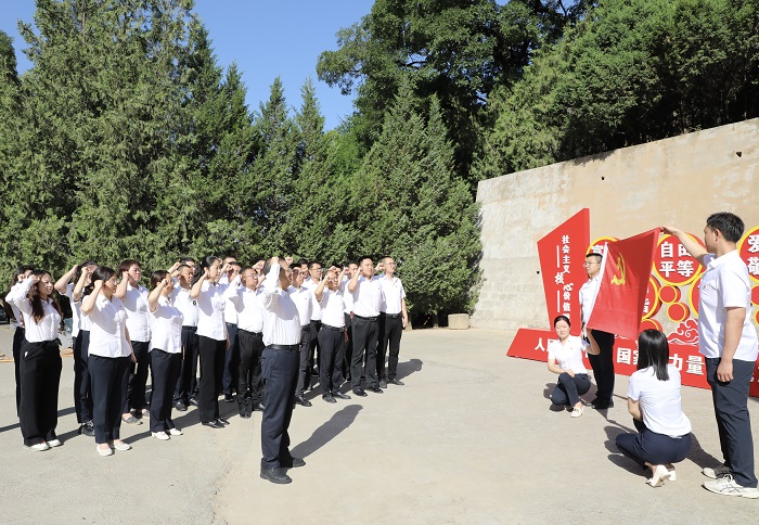 在楊家?guī)X革命舊址,集團黨委書記、董事長卜國平帶領(lǐng)全體黨員,面對黨旗高舉右手,齊肩握拳,再次莊嚴宣誓。“我志愿加入中國共產(chǎn)黨……隨時準備為黨和人民犧牲一切,永不叛黨。”鏗鏘恢宏的誓詞,聲聲震耳,強烈震撼著在場的每一位黨員,一字一句,神圣而豪邁,充分體現(xiàn)了黨員同志們對中國共產(chǎn)黨的無限忠誠和熱愛。隨后,在講解員的引導下,大家先后參觀中央大禮堂,毛澤東、朱德、周恩來等老一輩無產(chǎn)階級革命家故居,了解了黨的七大的歷史背景、會議過程和重要意義,重溫艱苦奮斗、自力更生的延安精神。